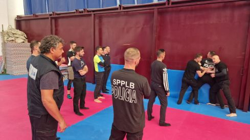 Así, entre las 9 y las 14 horas los policías locales que han podido aprender, conocer y comprender la operativa cuerpo a cuerpo, desde el derribo hasta el engrilletamiento, pasando por la contención y el control del sujeto. Distintas técnicas en distintos posicionamientos, tanto de forma individual como en binomio, y en diferentes escenarios como resistencias o agresiones a mano vacía, basado en una metodología lógica y real.
