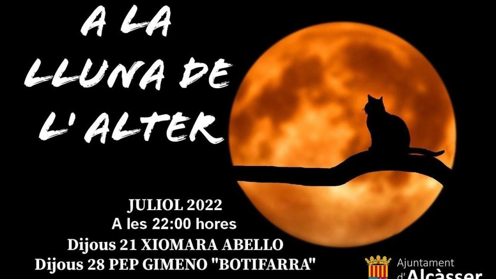 Regresa el ciclo musical ‘A la lluna de l’Alter’, unos conciertos en acústico y al aire libre que, en la edición de este año, tendrán dos citas musicales: el 21 y el 28 de julio. "Después de la buena aceptación del año pasado, volvemos a organizar estos conciertos, que serán completamente gratuitos, para acercar la cultura a los vecinos y vecinas de Alcàsser", ha explicado la alcaldesa de la localidad, Eva Zamora.