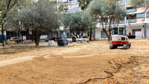 Obras en la Plaza Fusta de Benetússer tras la DANA