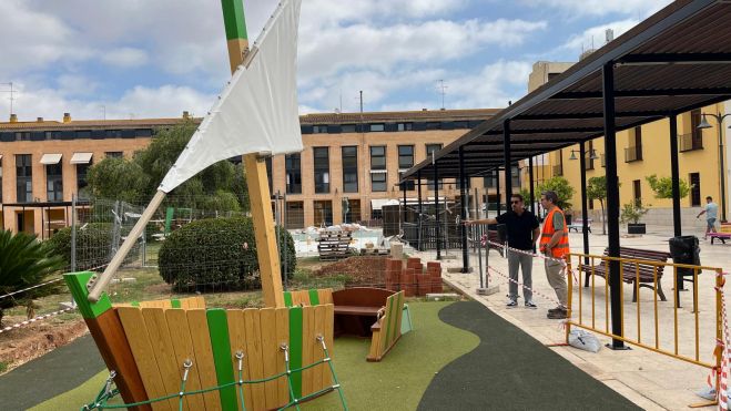 Además de la plaza Iturbi, cuya intervención finalizó en julio, recientemente también se ha hecho una actuación muy importante en la plaza Mayor de Catarroja. Dentro de la reforma integral de este icónico espacio del municipio, que ha incluido la eliminación de las barreras arquitectónicas de los accesos, la reparación de las arquetas de desagüe para evitar filtraciones en el parquing y la instalación de una nueva pérgola, también se ha ampliado y mejorado la zona infantil, con la sustitución de los antiguos juegos por uno nuevos y la colocación de un pavimento de caucho.