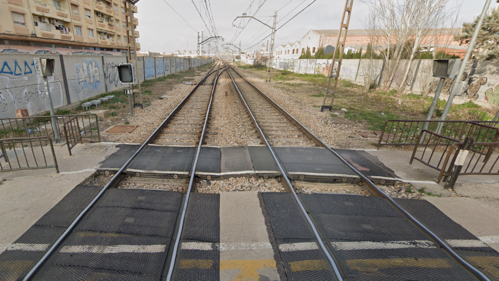 Paso a nivel de Alfafar, vía del tren entre Silla y València