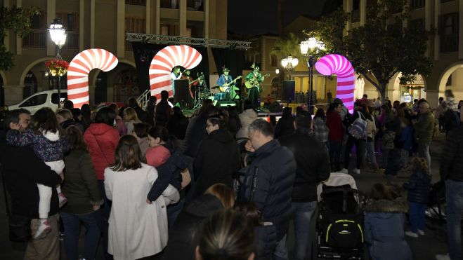 La programación especial del Ayuntamiento de Paiporta para las fiestas de Navidad ha empezado con el concierto de rock familiar a cargo de la Babau Band, en una fiesta en que también se repartían palomitas y que sirvió para estrenar el alumbrado navideño de las calles y plazas del pueblo.