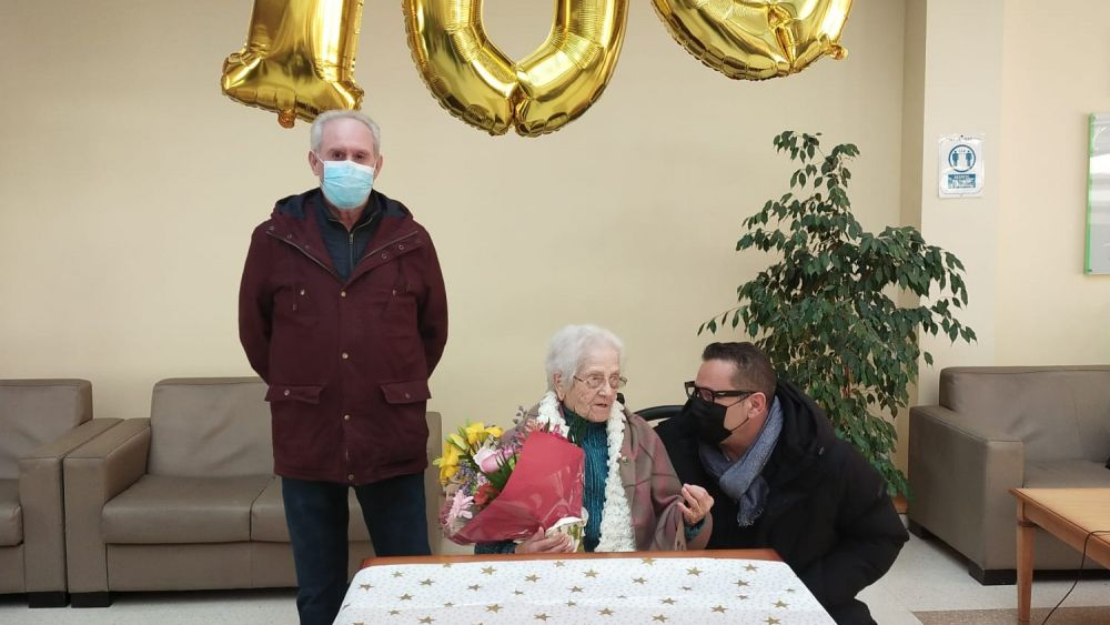 La Residencia Nova Edat celebró el centenario de una de sus residentes, Aurelia Pruñonosa, que recibió la visita del alcalde José Francisco Cabanes y del concejal de Personas Mayores, Pascual Puchades, que la acompañaron en tan señalada celebración.