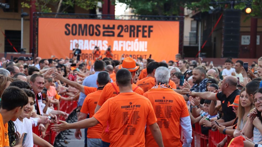El Torrent C. F. asciende a 2ª RFEF y tiñe de naranja la ciudad en una histórica rúa