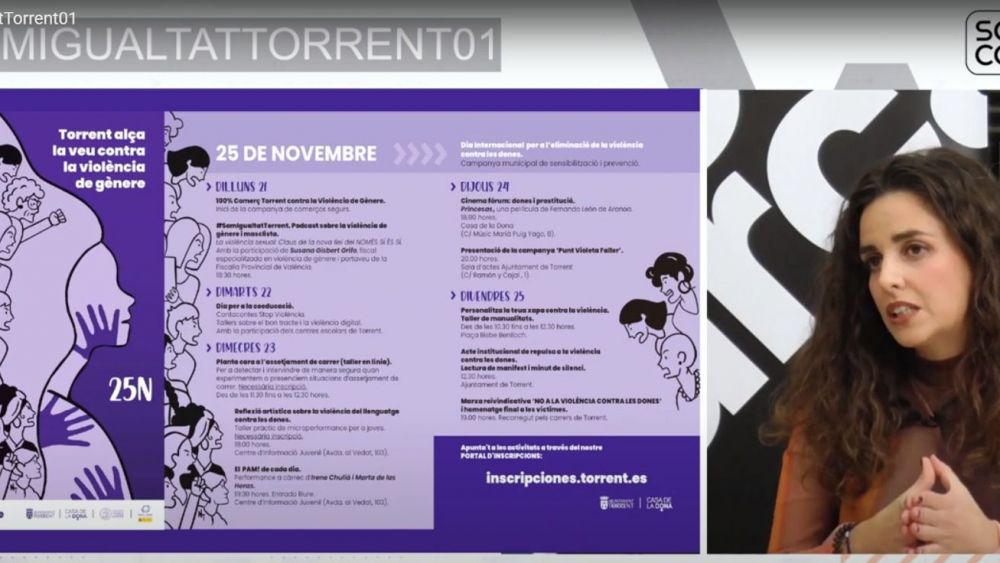 El Ayuntamiento de Torrent dio ayer el pistoletazo de salida a la programación de actividades en conmemoración del 25 de noviembre, Día Internacional de la Eliminación de la Violencia contra la Mujer, con las primeras acciones de la campaña Torrent alça la veu contra la violencia de gènere, la cual se desarrollará hasta el próximo 25 de noviembre ofreciendo a la ciudadanía talleres, proyección de películas, charlas, debates o actuaciones en directo, entre otros.