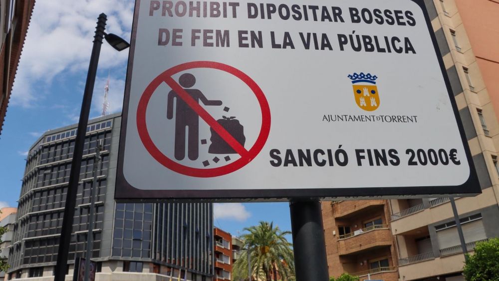 El Ayuntamiento de Torrent pide la colaboración de los ciudadanos para mantener la ciudad limpia. Se ruega utilizar los contenedores correctamente, depositando la basura en su interior y no tirando los residuos al suelo. Las sanciones por depositar las bolsas de basura en la vía pública son de hasta 2.000 euros.
