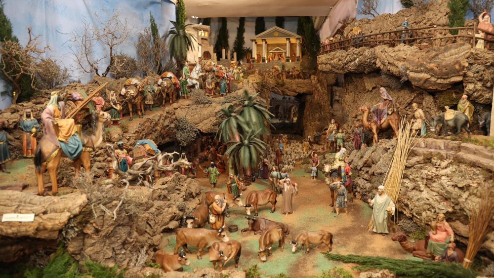 Miguel Ángel Falcó ha dedicado medio siglo a perfeccionar su Belén Monumental, combinando escenas bíblicas, paisajes minuciosos y detalles artesanales que hacen única la experiencia de la visita. Entre las figuras representadas se incluyen el nacimiento, la anunciación a la Virgen María, la visita a Santa Isabel, el sueño de José, la peregrinación y la posada, la adoración de los pastores, la cabalgata de los Reyes Magos o la huida a Egipto. Cada figura, hecha con pasta de madera y barro, refleja la dedicación y el cuidado extremo en su elaboración, que requiere un montaje de cuatro meses.