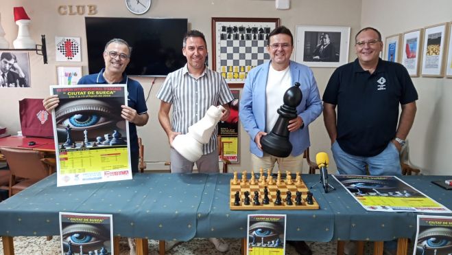 El Casal Multiusos acogerá, del 7 al 13 de agosto, la séptima edición del Open Internacional de Ajedrez 'Ciutat de Sueca', una de las citas más importantes en torno a este deporte que se celebran en la Comunidad Valenciana. El torneo está organizado por el Club Ajedrez Sueca, con la colaboración del Ayuntamiento, a través de la Concejalía de Deportes, y de la Federación de Ajedrez de la Comunidad Valenciana. En esta edición, se espera una participación de entre 80 y 120 jugadores, tal como ha señalado el director del campeonato, Amadeo Albert, en la presentación oficial del evento celebrada en la sede del Club Ajedrez Sueca, y en la que han intervenido también el alcalde de Sueca, Dimas Vázquez; el concejal de Deportes, Julián Sáez; y el secretario del Club, Eugenio Moreno.