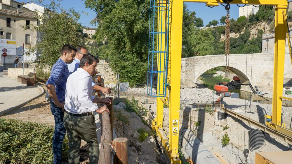Jorge Rodríguez visita las obras que permitirán pasar el nuevo colector por debajo del Pont Vell de Ontinyent
