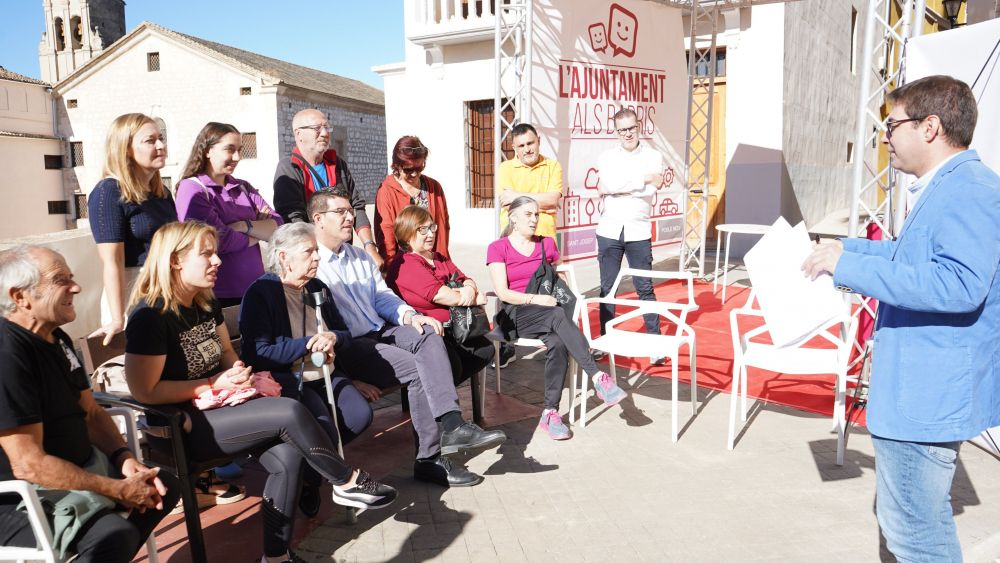 El alcalde Jorge Rodríguez y varias concejalas y concejales se han desplazado a un punto informativo habilitado en la Plaza de la Vila, donde han podido explicar las actuaciones ejecutadas y en ejecución en el barrio, y también recoger las sugerencias de la ciudadanía. El edil de Territorio, Joan Sanchis, intervenía ante un grupo de vecinos y vecinas que acudían a este punto informativo para incidir especialmente en los aspectos urbanísticos y explicar las soluciones y proyectos del Gobierno de Ontinyent al problema de las viviendas en estado de abandono al barrio, anunciando que el Ayuntamiento va a continuar avanzando en los requerimientos a los propietarios para que tengan las viviendas en condiciones.