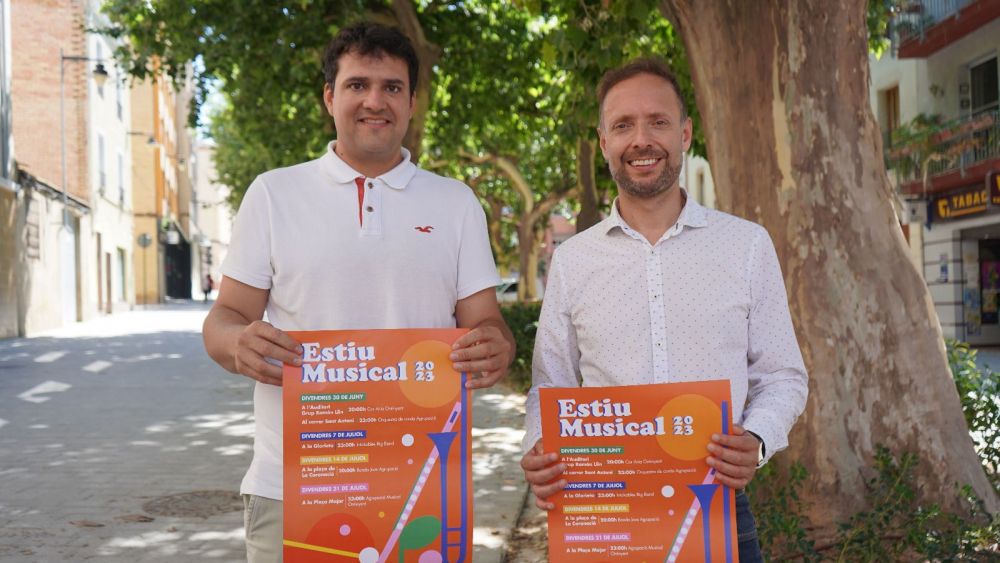 El concejal de Cultura del Ayuntamiento de Ontinyent, Àlex Borrell, y el presidente de la Agrupación Musical Ontinyent, Pablo Lluch, presentaban este jueves la programación del "Verano Musical 2023", que incluirá 5 conciertos en diversos espacios escénicos de los diferentes barrios de la ciudad.