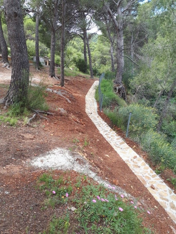 Los trabajos han consistido en el control de la escorrentía, ya que las lluvias estaban destrozando muros de piedra del barranco que separa esta área recreativa del monasterio de Santo Espíritu, una zona de gran afluencia de público. Además, se han reconducido las lluvias mediante una cuneta perimetral y se han rehecho los muros rotos.