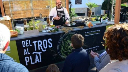 Joan Clement ha continuado la exhibición gastronómica por la tarde con el showcooking "Terra de Faura amb dolços del camp", un plato compuesto por una tierra hecha a partir de rollitos de anís, crema de boniato asado, aguacate,algarroba y nueces, mezclados como base de un sabor ancestral como es el chocolate de algarroba y finalizado con una crema suave de naranja de la comarca.