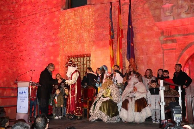 La cabalgata ha finalizado frente a Ca la Vila, donde se ha representado en primer lugar la escena de la adoración al niño Jesús. Posteriormente, los Reyes Magos han sido recibidos por la corporación municipal. El alcalde Manolo Civera les ha hecho entrega de la llave de la ciudad, en agradecimiento y muestra de hospitalidad por su visita a Llíria.