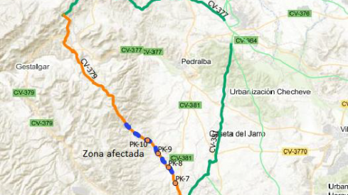 La Diputació de Valencia ha iniciado las obras de refuerzo del firme en la CV-379 de Chiva a Gestalgar. Para conseguir agilizar su ejecución con las debidas garantías de seguridad para el tráfico y para los propios trabajadores, se cortará la vía el miércoles, 20 de junio. El corte se prolongará durante tres días, en horario laboral, y afectará al tramo comprendido entre los kilómetros 7 y 11. Durante este tiempo, se desviará a los vehículos por las carreteras CV-377 y CV-381.