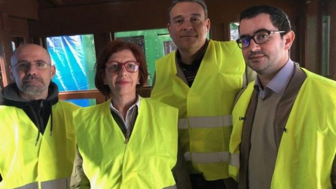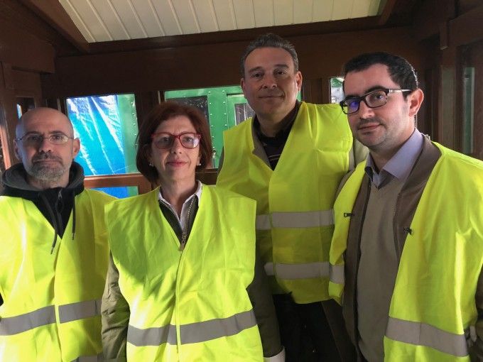 La visita de Alicia Piquer, Victor Xercavins e Ismael Rubio con el comisario al Taller de Historia Ferroviaria es un paso adelante en las conversaciones que han sido manteniendo con FGV para la cesión de elementos ferroviarios, señales, mapas o documentación que podrán formar parte de la exposición.