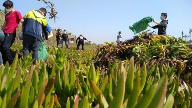 Medio centenar de alumnos y alumnas de tercero de ESO del IES La Garrigosa de Meliana han realizado una jornada de voluntariado ambiental en la playa, que ha consistido en recoger selectivamente residuos; acercar restos vegetales a la duna, que representan el hábitat de nidificación y alimentación del chorlitejo patinegro; retirar manualmente vegetación exótica invasora, que compite por los recursos con la vegetación mediterránea; y plantar una especie propia de los sistemas dunares.