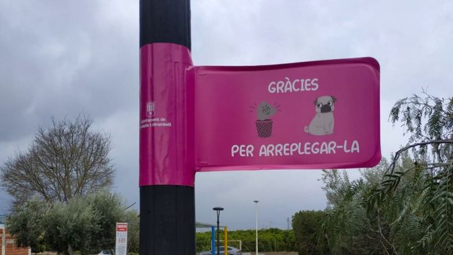 En total, se colocaron 100 banderolas y 100 esquineras con los eslóganes “El pipí me destruye” y “Gracias por recogerla” en plazas como la de la Llar y la del Poble, en parques como el de la plaza de los Oficios, Sant Ferran y Federica Montseny, y en las calles Ernest Lluch, Macarella y Sant Vicent, entre otras. También se pueden encontrar estos carteles en el pipi can del final de la calle Ermua y en el área del polígono.