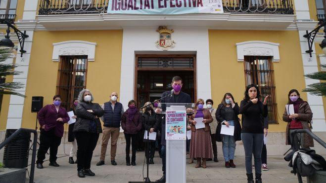 La lectura ha comenzado con la intervención del alcalde de Burjassot Rafa García, quien está al frente de la concejalía de Igualdad y Feminismo y ha continuado con la participación de mujeres que forman parte del Equipo de Gobierno y de la Corporación Municipal, del Foro de Participación y de representantes de entidades y asociaciones de Burjassot integradas por mujeres. El acto ha sido seguido igualmente por un nutrido grupo de personal municipal, grupos de profesores y alumnos y alumnas de diferentes centros locales, así como vecinos y vecinas que han asistido a título personal.