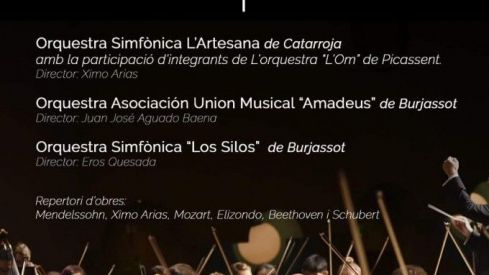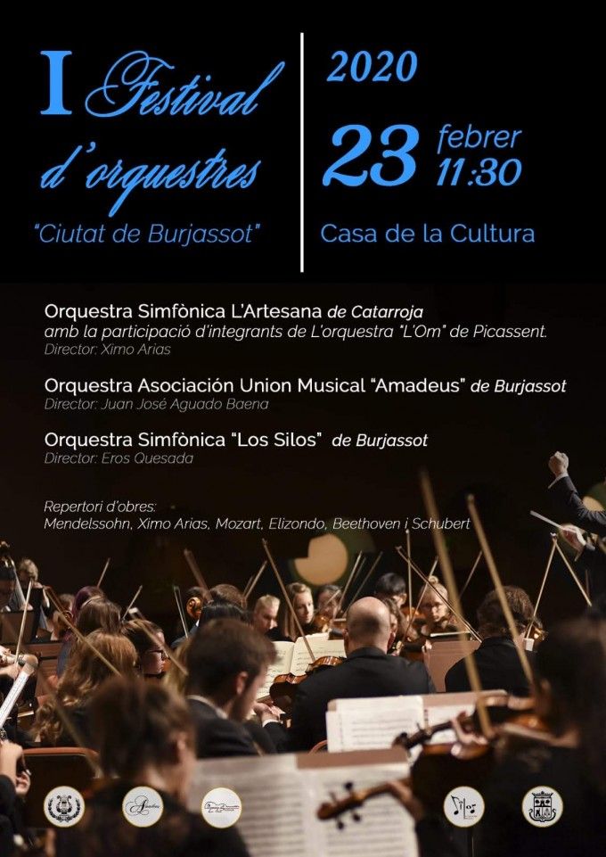 El evento va a contar con la participación de la Orquesta Sinfónica “L’Artesana” de Catarroja, con la participación de integrantes de la orquesta “L’Om” de Picassent. Todos ellos bajo la batuta de Ximo Arias, como director. La segunda de las orquestas que participarán en el festival será la de la Asociación Unión Musical “Amadeus” de Burjassot, dirigida por Juan José Aguado Baena.