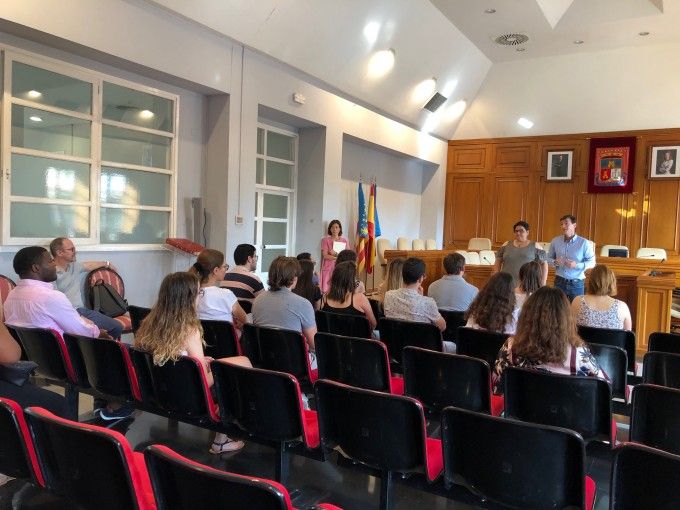 El mes de julio ha comenzado en el Ayuntamiento de Burjassot, con la bienvenida a los 21 alumnos adscritos al programa La Dipu te Beca que realizarán sus prácticas en diferentes departamentos y áreas del Consistorio durante los meses de verano.