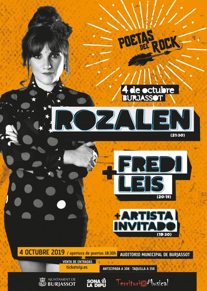 Comiéndote a besos, Girasoles, La puerta violeta y muchos más éxitos de Rozalén sonarán en Burjassot el viernes 4 de octubre. El Auditorio Municipal acogerá este genial concierto enmarcado dentro del evento Poetas del Rock, donde además de la cantante albaceteña, actuarán el cantautor Fredi Leis y un artista invitado cuyo nombre está aún por confirmar. El concierto llega de la mano de Territorio Musical S.L.
