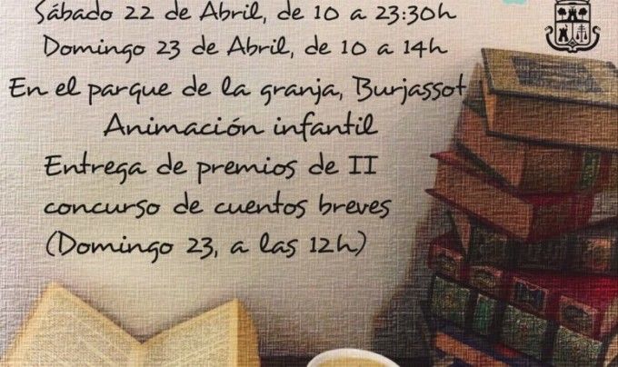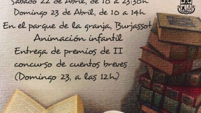 La feria comenzará el sábado 23 de abril a las 10 de la mañana y que se extenderá, en este primer día, hasta las 23:30 horas. El domingo el horario será de 10 a 14 horas y, a las 12 horas, se hará entrega de los premios del II Concurso de Cuentos Breves que este año tenía como lema Un mundo mejor y que ha contado con la participación de los estudiantes de cuarto a sexto de primaria y de primero de ESO matriculados en colegios de Burjassot o bien que cursan sus estudios fuera del municipio pero están empadronados en el pueblo.