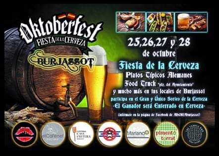 La Asociación de Hosteleros Reunidos Activamente de Burjassot (AHORA) quiere celebrar con la ciudadanía una fiesta típicamente alemana cuya celebración se ha extendido, desde hace unos años, mucho más allá de las fronteras germanas. Se trata de la Oktoberfest, la famosa Fiesta de la Cerveza que, en Burjassot tendrá lugar del 25 al 28 de octubre, en diferentes bares y restaurantes del municipio.