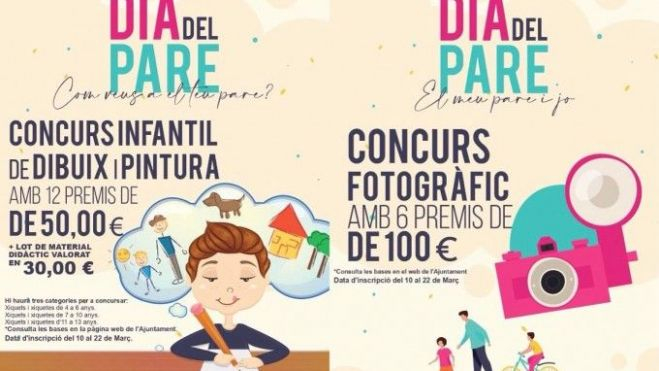 El concurso infantil de dibujo y pintura invita a que los más pequeños plasmen como ven a su padre, y en función de las edades, desde los cuatro hasta los trece años, se agruparán en tres categorías diferentes. Habrá un total de 12 ganadores y como premio cada uno de ellos recibirá un lote didáctico valorado en 30 euros y una tarjeta valorada en 50 euros para consumir en el comercio local.