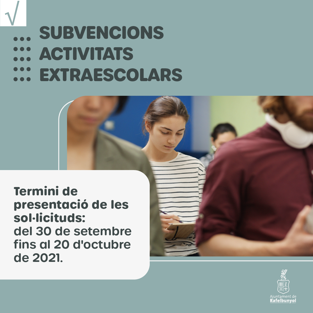 El Ayuntamiento de Rafelbunyol ya ha puesto en marcha, por primera vez en la historia, sus subvenciones para actividades extraescolares y excursiones. El plazo de presentación de solicitudes para poder optar a ellas se abrió el pasado 30 de septiembre y se cerrará el miércoles 20 de octubre.