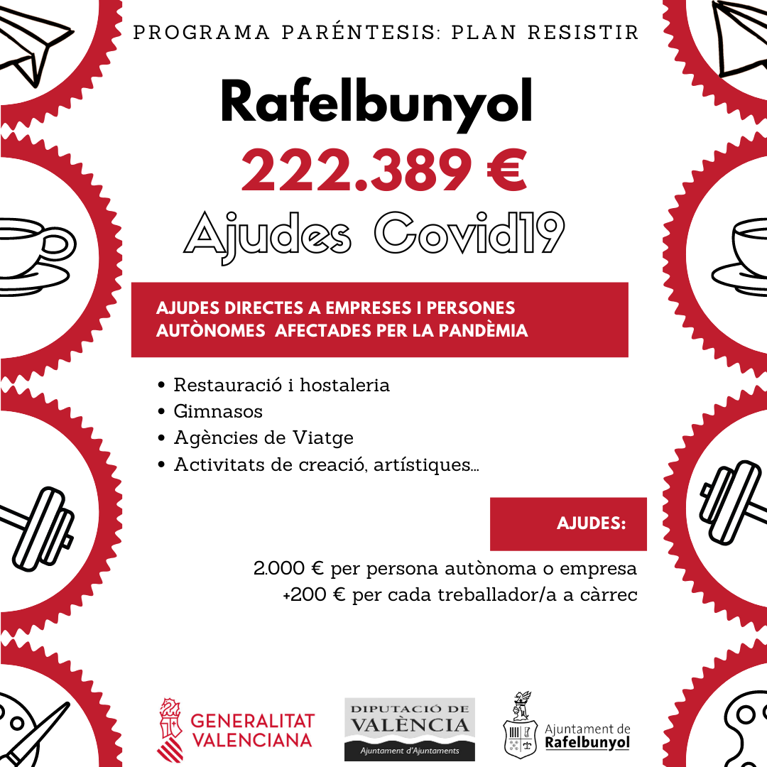 El Ayuntamiento de Rafelbunyol inicia el pago del Plan Resistir y amplía el plazo para continuar pidiendo estas ayudas un mes más.