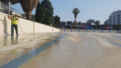 Durante la última semana, los técnicos centraban los trabajos en la limpieza del casco de la piscina mediante la utilización de los sistemas de vapor a presión, intervención previa al rellenado de agua.