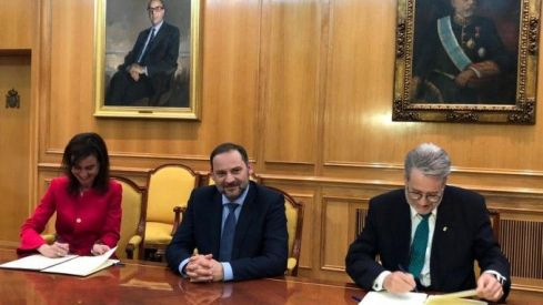 El alcalde de Albal, Ramón Marí, ha firmado esta tarde el convenio con Adif para la construcción y la llegada del tren a la localidad de Albal. Con la presencia de Adif, Isabel Pardo de Vera Posada y el Ministro de Fomento, José Luis Ábalos, Ramón Marí ha firmado este paso crucial para la llegada del esperado tren.