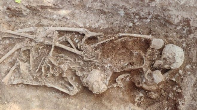Con motivo de las obras de ampliación y remodelación del CEIP Jaume I de Alcàsser, se han encontrado restos óseos pertenecientes a un yacimiento visigodo. En estos momentos, se está realizando una intervención arqueológica dirigida por los arqueólogos Tina Herreros y Pablo Sañudo, que permitirá aportar nuevos datos sobre el ya conocido yacimiento visigodo de la Senda de l’Horteta, y de las poblaciones que poblaron la zona en esta época.Los trabajos, de acuerdo con el proyecto constructivo, se han iniciado por el patio norte del recinto. Por el momento, se han localizado siete fosas de inhumación con características similares. Todas ellas son de forma ovalada, con una longitud superior a los dos metros y anchura variable, excavadas directamente en el terreno natural. Sobre ellas, se emplazan losas de piedra caliza a modo de estela o lápida, que servían para señalizar su ubicación.Con el fin de no interferir en los plazos previstos de duración de la primera fase de las obras, la excavación se está centrando en la documentación de las tres fosas situadas en el espacio que ocupará el nuevo pabellón de primaria. En todas se ha localizado más de un individuo. Una de ellas contiene cuatro esqueletos adultos y uno de edad infantil: un hombre, una mujer con pendientes, y otro, aún por exhumar, cuyo sexo está pendiente de determinar.Además, en el relleno de tierra del interior de la fosa, se han encontrado fragmentos cerámicos correspondientes a una vasija y las mandíbulas de un bóvido y un carnívoro, que formarían parte del ritual de inhumación. La cronología propuesta del conjunto gira entorno al s. VI d. C.La alcaldesa del municipio, Eva Zamora, ha querido dejar claro que «este hallazgo solo retrasará el mínimo posible los trabajos de ampliación y remodelación del CEIP Jaime I». Asimismo, ha destacado la importancia de los restos encontrados, ya que «aportan más información sobre los orígenes de nuestro pueblo».