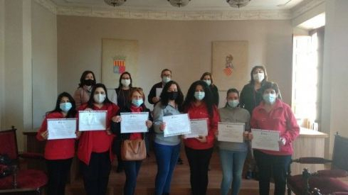 Por la mañana, en el Salón de Plenos del Ayuntamiento, sehizo entrega de los certificados profesionales para los diez alumnos y alumnas trabajadoras que han finalizado la Escuela de Ocupación Et Formem. La alcaldesa Eva Zamora,acompañada por la concejala de Empleo, Paqui Abella, y junto con el equipo docente, efectuaron la entrega simbólica de los diplomas.