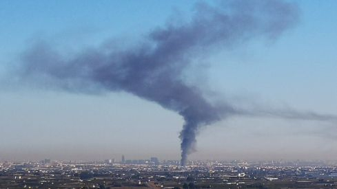 A las 10:52 horas se ha declarado un incendio en una nave con materiales de desguace de Aldaia. El incidente se ha producido tras incendiarse una caravana, extendiéndose hasta una parte de la instalación, hecho que ha provocado una columna de humo visible desde diferentes puntos de la zona.