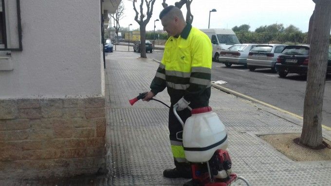 El equipo de trabajo está compuesto por dos operarios equipados de un furgón hidrolimpiador y dos mochilas con carritos de transporte para aplicar líquidos a presión, utilizando ácido anticalcáreo diluido a un 5%. El efecto corrosivo está neutralizado para evitar los efectos no deseados del producto puro en este tipo de tratamientos. Dando la tranquilidad a la población de no causar ningún efecto en las personas ni tampoco en los animales.