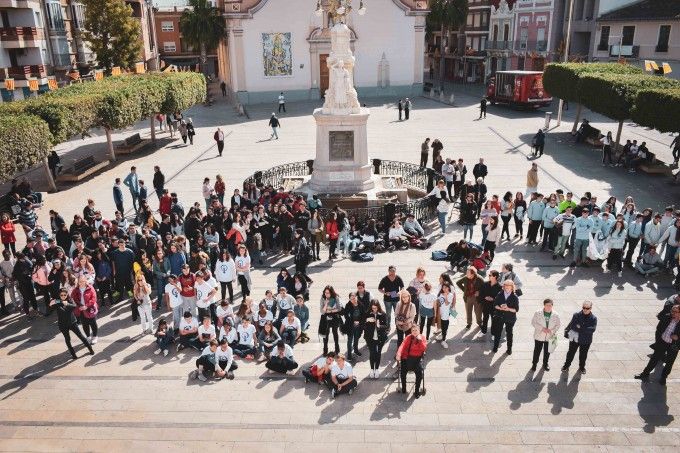Las y los alumnos de Alfafar fueron los protagonistas de un acto en el que pudieron colgar en el balcón de l’Ajuntament diferentes pancartas que habían preparado especialmente para el Día de la Mujer y llevaron a cabo numerosas actividades como una sentada de protesta en recuerdo a las víctimas de la violencia machista, la lectura de poemas y manifiestos escritos por ellos mismos o la interpretación de la canción “Puerta Violeta“ de Rozalén para todos los asistentes.