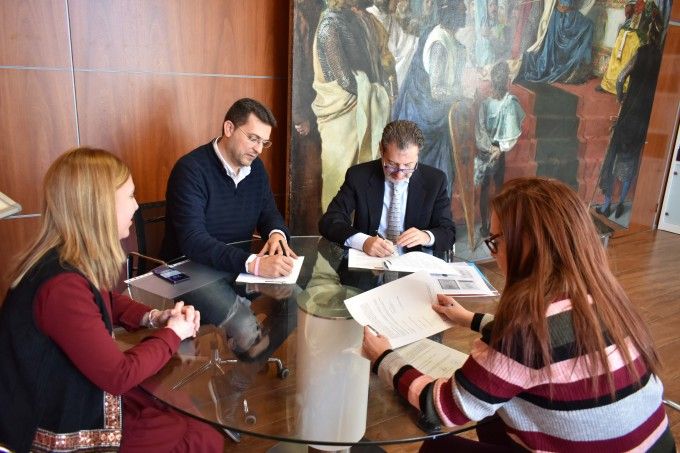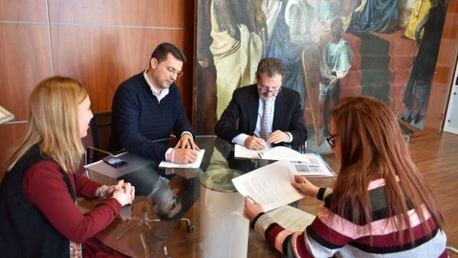 El alcalde de Alfafar, Juan Ramón Adsuara y el representante de la empresa multinacional de moda y complementos Globo firmaron e hicieron oficial ayer en el consistorio el acuerdo de colaboración para la inserción laboral de vecinos y vecinas de Alfafar tras la apertura de su nueva tienda el pasado mes de diciembre en la zona comercial del municipio.