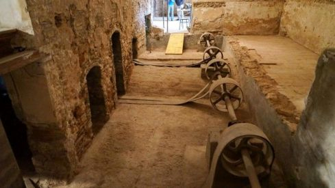 De esta época se han conservado numerosos muros en alzada correspondientes a las antiguas fachadas del cuerpo del edificio y, entre los hallazgos, ha destacado la excavación de uno de los dos pasajes del agua de la acequia, conocidos como ‘els cacaus’, donde estaba alojada la muela que proporcionaba el movimiento al molino hidráulico.