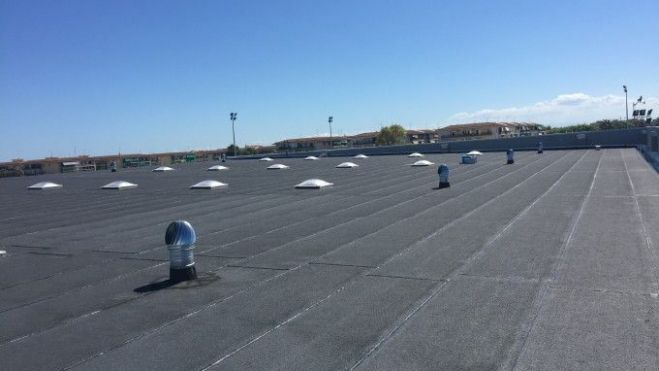 Se trata de una cubierta tipo Deck compuesta de varias capas, una primera de chapa perfilada grecada -que es la que soporta toda la carga de la cubierta-, una segunda capa de aislamiento termo-acústico, una lámina impermeabilizante para garantizar la total estanqueidad en toda la superficie y una última capa compuesta por una lámina asfáltica con granos minerales.
