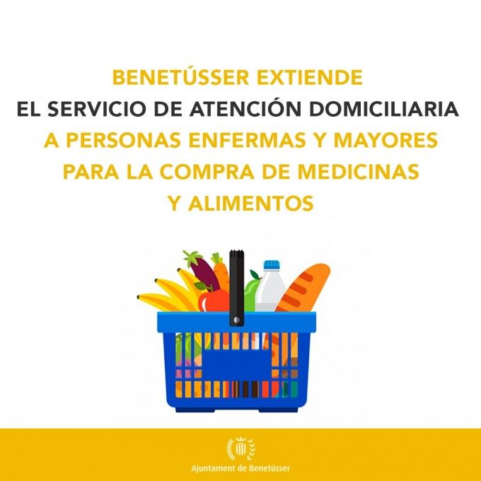 Desde la declaración del estado de alarma el Ayuntamiento de Benetússer ha prestado un servicio de compra de alimentos y medicinas a personas mayores y enfermas de manera extraordinaria. Este servicio se va a prolongar durante todo el año 2020 para prevenir contagios de COVID-19. Según se recoge en el Plan de Recuperación Económica y Social del Ayuntamiento, el servicio de atención domiciliaria extiende sus tareas habituales para ayudar además a los vecinos y vecinas más vulnerables con la compra de medicinas y alimentos. La concejala de Bienestar Social, Carmen Elvira Albors Gil, indica que "desde servicios sociales se presta especial atención a personas mayores o enfermas, solas, afectadas por el aislamiento para diferentes tipos de apoyo como compras, recogida de recetas, cocinado, aseo del hogar y personal, siguiendo criterios de flexibilidad y adaptando todos los recursos de los que disponemos a la situación actual". Para solicitar el servicio de ayuda a domicilio mientras dure el estado de alarma, pueden ponerse en contacto con Servicios Sociales en el teléfono 963752950 ext. 523, de 10 a 14 y de 17 a 20 horas en días laborables.Fuera de este horario, y ante una posible urgencia, como puede ser la necesidad de adquirir un producto farmacéutico, también se ofrece la posibilidad de llamar a la Policía Local que trasladará el aviso a Servicios Sociales.