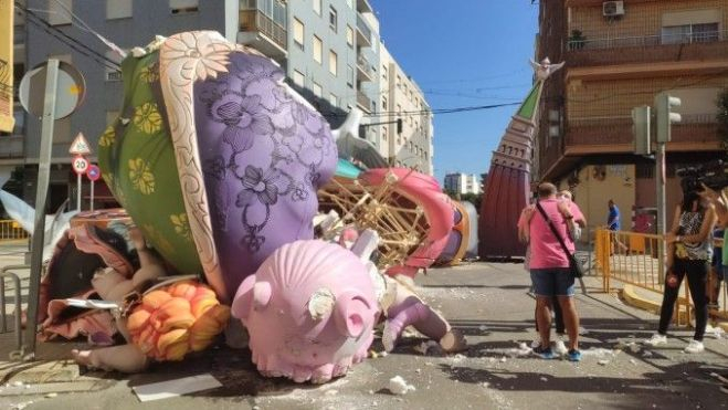 Un hombre resultó herido la pasada noche en Catarroja (Valencia) tras caer una falla como consecuencia de las lluvias registradas en las últimas horas y quedar atrapado debajo de ella, según ha indicado el Centro de Información y Coordinación de Urgencias (CICU).El suceso se registró sobre las 23.00 horas en la avenida Doctor Marañón de la citada localidad. Tras recibir el correspondiente aviso, efectivos sanitarios se desplazaron con una unidad de Soporte Vital Básico (SVB) hasta el lugar del incidente para asistir a este hombre."Fue todo tan rápido, el viento se levantó y la falla cayó a tierra en segundos, aunque todavía no estaba acabada de plantar y pilló a gente alrededor que tuvo que salir corriendo. A la fallera mayor justo la pilló en medio de dos ninots, que si no la hubiera pisado totalmente y ella tiene un esguince. Pero bueno, dentro de lo que podía haber pasado nos alegramos que no le haya pasado nada a nadie", ha explicado Rosa, vicesecretaria de la falla y madre de la fallera mayor infantil."Cayó la falla y me quedé justo en el medio entre dos ninots. La gente me dice: Alba, te vimos y cuando cayeron los ninots desapareciste. La gente empezó a saltar por la falla, la tuvimos que romper para localizar a todos los niños que estaban por ahí. Jo estoy fastidiada, pero bueno hay que pensar en positivo y lo importante es que estoy viva y que podíamos haber tenido una desgracia", ha contado la fallera mayor, Alba Miquel.El herido, de 42 años, sufrió un politraumatismo y fue trasladado tras una primera asistencia al hospital La Fe de València en la ambulancia del Soporte Vital Básico.