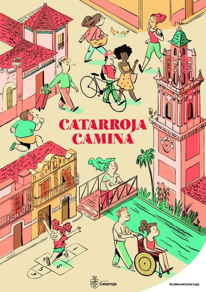 "Catarroja Camina funcionará como marca paraguas otras actuaciones municipales, como la reurbanización de la calle Paluzié, las obras del cual empezarán de forma inmediata y que prevén una calle en plataforma única y que incorpore arbolado y mobiliario urbano o la ruta ciclopeatonal que conectará Catarroja con Paiporta y Massanassa en un proyecto subvencionado por la Diputación de València", explica Martí Raga, regidor de urbanismo. Para el diseño del cartel de la campaña se ha contado con el artista de Banyeres, César Barceló que ha adaptado en formato comic una Catarroja con un urbanismo más amable.