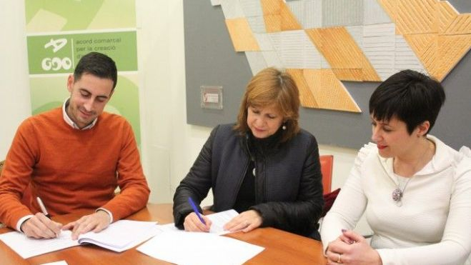 El presidente de la Mancomunitat Intermunicipal de l’Horta Sud, Carlos Fernández Bielsa; la presidenta del Patronato de Educación Especial “Reina Sofía” de Catarroja, Rosa Jorge Alba; y la primera teniente de alcalde del Ayuntamiento de Catarroja y componente del organismo supramunicipal de l’Horta Sud, Lorena Srivent, han firmado esta semana el convenio de cesión de uso del centro ocupacional “9 d’Octubre” al Patronato Reina Sofía.