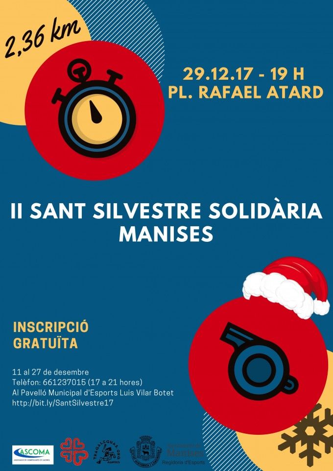 La Concejalía de Deportes del Ayuntamiento de Manises, junto con el Club Atletismo Tragaleguas, han organizado la II edición de la San Silvestre Solidaria de Manises que tendrá lugar el próximo viernes 29 de diciembre a las 19 h.