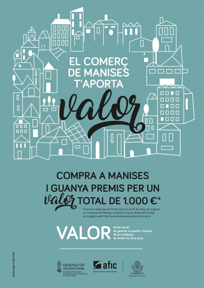 La concejalía de Comercio del Ayuntamiento de Manises, a través de su campaña «El comercio de Manises te aporta valor» sorteará, el próximo 3 de mayo, cuatro premios de un importe de 200 € cada uno, a los cuales se puede optar con la aportación de tickets de compra de comercio tradicional con un valor de 20 € o más.