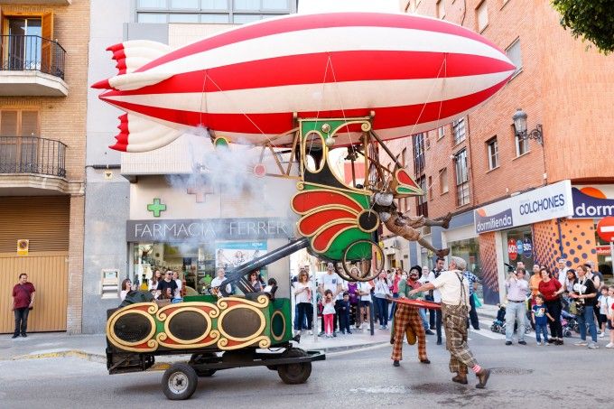 El viernes, alrededor de las seis de la tarde, el público congregado en la avenida de Gregorio Gea se trasladaba a principios del siglo XX y asistía a un evento único, la inauguración del primer viaje de su ‘Zeppelin’ y que a su vez inauguraba también el festival. Se trataba del espectáculo de la compañía catalana La Baldufa, que con su gran estructura sobre ruedas y su arte para hacer reír a todo el público, hicieron las delicias sobre todo de los más pequeños que fueron siguiendo asombrados todo el recorrido del Zeppelin.