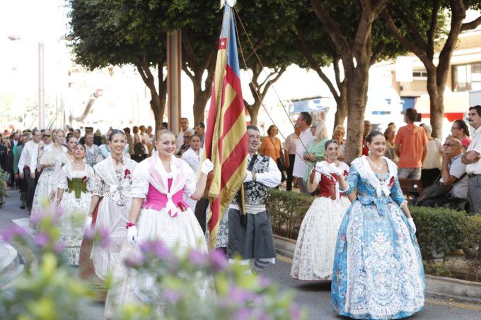 Antes de iniciar la procesión, el Grup de Danses de Mislata ha realizado una dansà en la plaza justo antes de que el tabal i la dolçaina iniciaran el recorrido. La procesión, organizada por la Agrupación de Fallas y el Ayuntamiento, la abrían las casas regionales y a continuación los presidentes y falleras mayores de las once comisiones de la ciudad, que custodiaban la Senyera.
