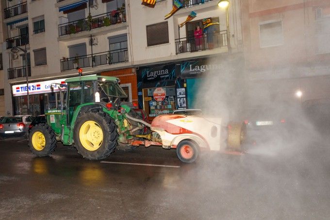 Desde anoche, un tractor con pulverizador recorrerá los barrios de Mislata diariamente intensificando la limpieza viaria, algo que para el alcalde Bielsa "es una demostración de que vamos a seguir protegiendo a la ciudadanía día y noche ante esta crisis sanitaria".